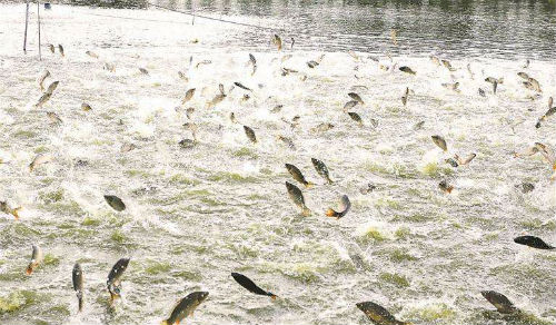 2.增加水體溶氧。有增氧設(shè)備的可在晴天中午堅(jiān)持開(kāi)啟增氧機(jī)2小時(shí)以上,遇到陰雨天或天氣突變,要及時(shí)開(kāi)啟增氧機(jī)。如無(wú)增氧機(jī)的可采用潛水泵在池內(nèi)打循環(huán)水(時(shí)間在下午3時(shí)前,切忌在傍晚進(jìn)行),增強(qiáng)水體的對(duì)流與交換。